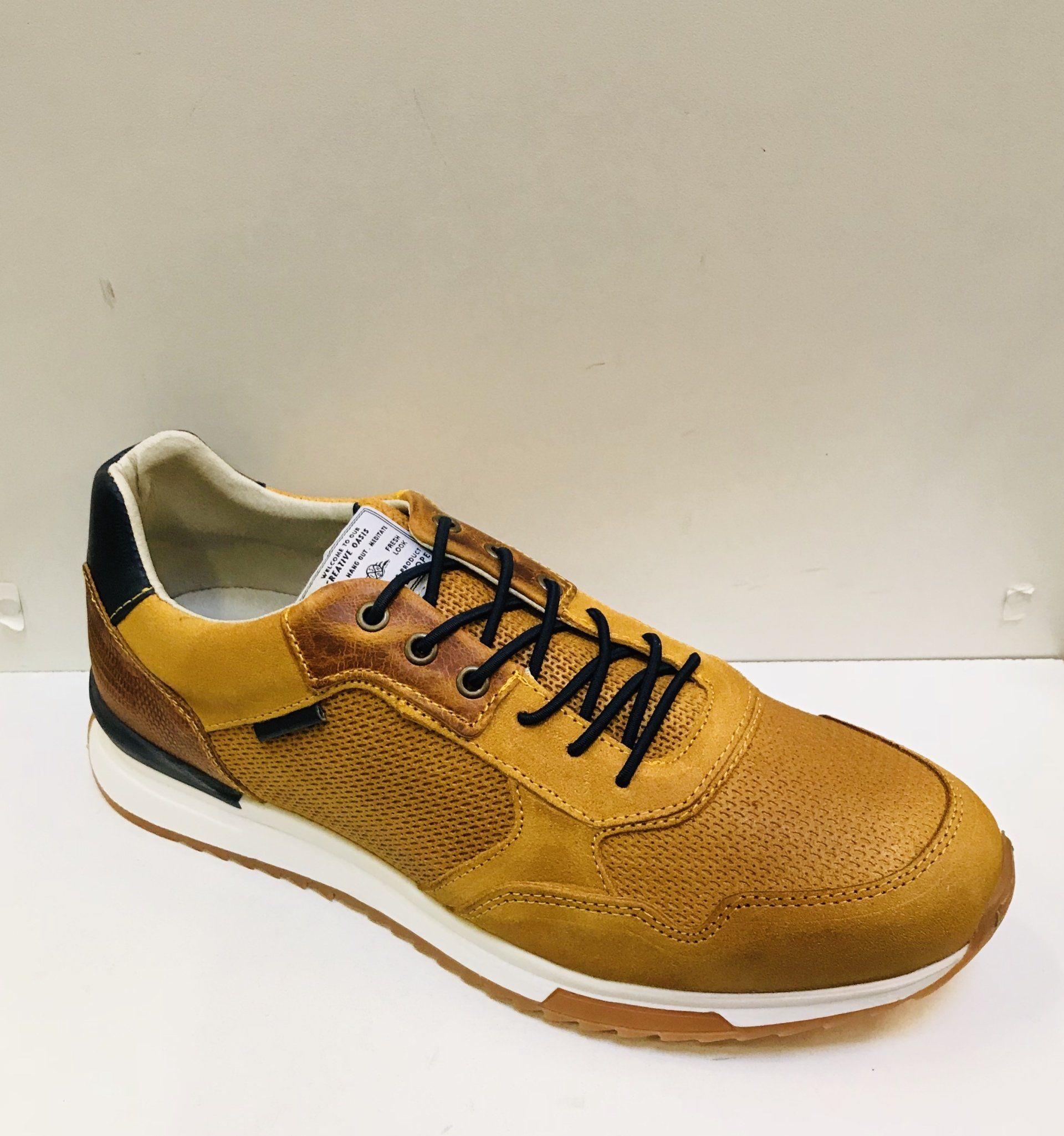 Volledig leer met uitneembare binne'nzolen in de meeste modellen.